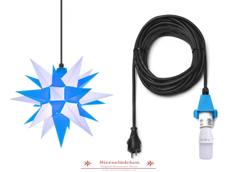Herrnhuter Stern A4 weiß/blau + Aussenkabel 10m