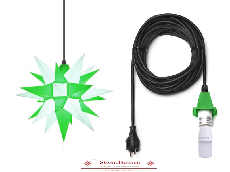 Herrnhuter Stern A4 weiß/grün + Aussenkabel 10m
