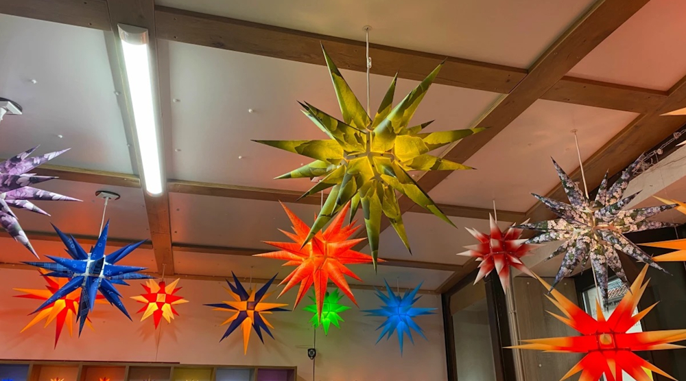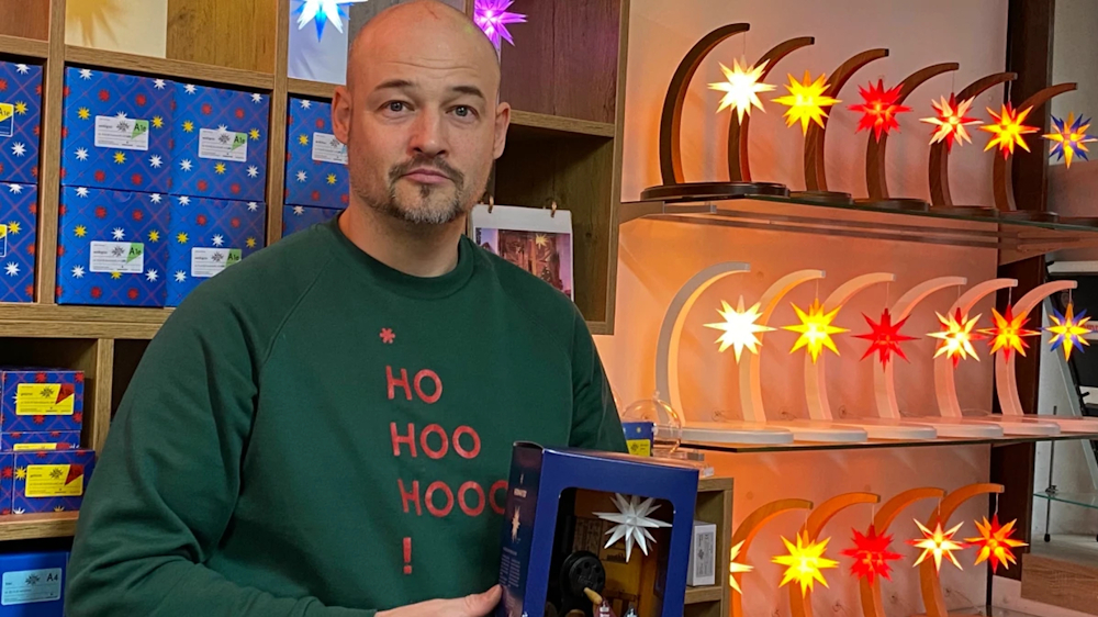„Ich wollte einfach zeigen, wie manche Sterne aussehen, wenn sie aufgebaut sind und ausgeleuchtet werden“, so der Ladeninhaber, der zwei Mitarbeiterinnen beschäftigt. Gerade bei den Sonderauflagen Natur mache sich das bezahlt. Nach drei floralen Motiven gibt es 2024 die „Holzmaserung Erle“.