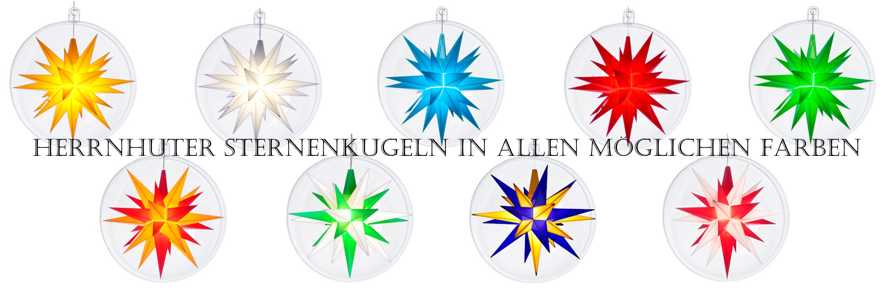 Sie können die Sterne in den Kugeln hängend präsentieren oder auch stehend auf 2 Sockeln. Stehend auf 2 Sockeln, wenn Sie die Öse an der Kugel im Sockel verstecken möchten oder nur 1 Sockel, wenn die Öse oben sichtbar sein soll.Sie können die Sternenkugeln gleich komplett mit Stern kaufen oder Sie bestellen die Kugel und die Sockel seperat.